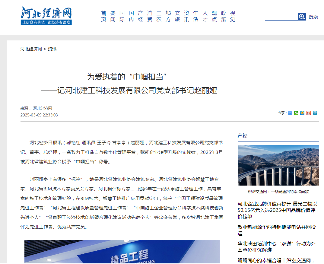 為愛(ài)執(zhí)著的“巾幗擔(dān)當(dāng)” ??----記河北建工科技發(fā)展有限公司黨支部書(shū)記趙麗婭 ? 趙麗婭,河北建工科技發(fā)展有限公司黨支部書(shū)記、董事、總經(jīng)理,一名致力于打造自有數(shù)字化管理平臺(tái),賦能企業(yè)轉(zhuǎn)型升級(jí)的實(shí)踐者,2025年3月被河北省建筑業(yè)協(xié)會(huì)授予...