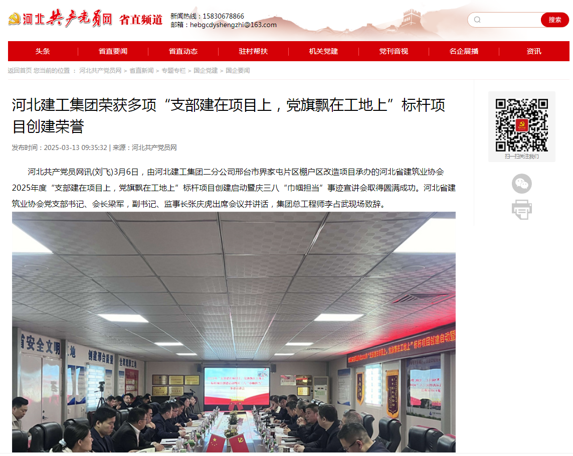 河北建工集團(tuán)榮獲多項(xiàng)“支部建在項(xiàng)目上,黨旗飄在工地上”標(biāo)桿項(xiàng)目創(chuàng)建榮譽(yù) ? ? ? 3月6日,由河北建工集團(tuán)二分公司邢臺(tái)市界家屯片區(qū)棚戶(hù)區(qū)改造項(xiàng)目承辦的河北省建筑業(yè)協(xié)會(huì)2025年度“支部建在項(xiàng)目上,黨旗飄在工地上”標(biāo)桿項(xiàng)目創(chuàng)建啟動(dòng)暨慶三...