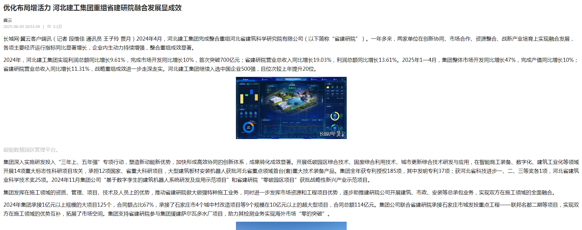 優(yōu)化布局增活力? ? ?轉(zhuǎn)型升級(jí)開(kāi)新篇? 河北建工集團(tuán)重組省建研院融合發(fā)展顯成效 ? ? 在國(guó)有企業(yè)改革深化提升行動(dòng)的關(guān)鍵時(shí)期,河北建工集團(tuán)有限責(zé)任公司堅(jiān)決貫徹落實(shí)省委、省政府和省國(guó)資委深化國(guó)企改革的決策部署,2024年4月完成整合重組...