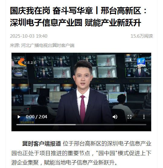 國慶我在崗 奮斗寫華章丨邢臺高新區(qū):深圳電子信息產(chǎn)業(yè)園 賦能產(chǎn)業(yè)新躍升 2025-10-03 19:40 15.6萬閱讀 來源: 河北廣播電視臺冀時客戶端 冀時客戶端報(bào)道?位于邢臺高新區(qū)的深圳電子信息產(chǎn)業(yè)園也正處于項(xiàng)目推進(jìn)的重要節(jié)...